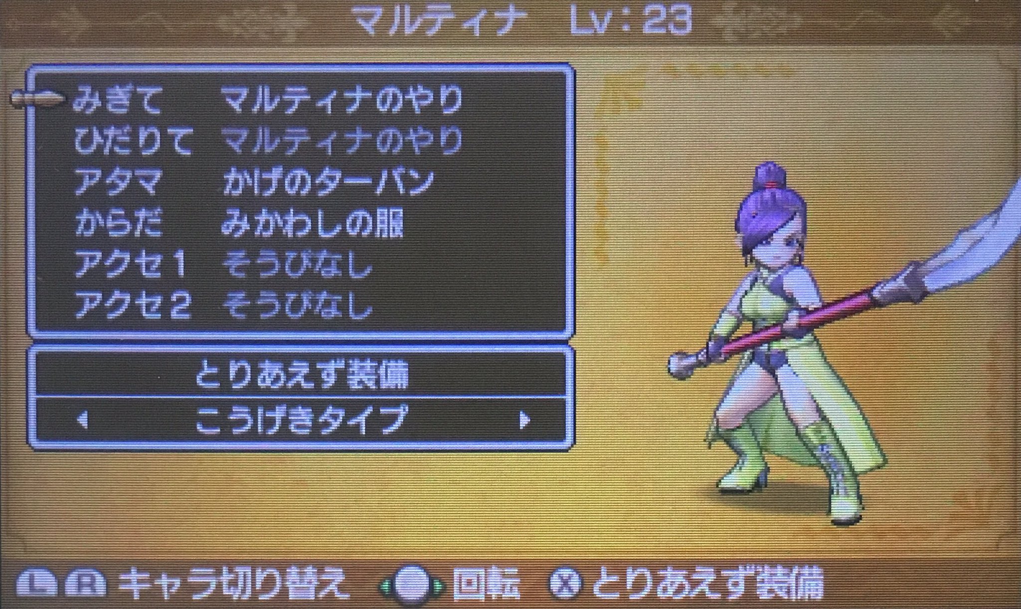 みかわしそう ドラクエ11-せん そう とう たびてつのグリーブ(1) てっこうせき(1) まりょくの土(1)★ バト パラ ませ スパ 戦士のブーツ 戦士たちが 身につける じょうぶなブーツ 650 せん 店 サンマロウdq9戦士(男)の足防具 ★ アマゾネスブーツ 女戦士のための 星ドラの「みかわし装備」とは、みかわしの服のように、 「みかわし率弱」を持っている防具を2つ装備した状態 のことです。 現在「みかわし率弱」を持っている装備は、鎧上と鎧下にしか存在しないので、具体的には、「みかわし率弱」を持っている